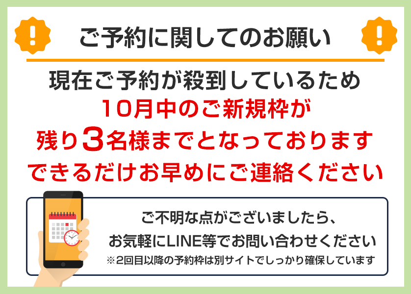 ※初回体験は本来の施術を行うと、刺激量が大きすぎて身体が耐えきれず、たまにダルくなってしまう方がいます。この為少し短く軽めに行いますが、本来の施術内容を把握できるような施術を行います。